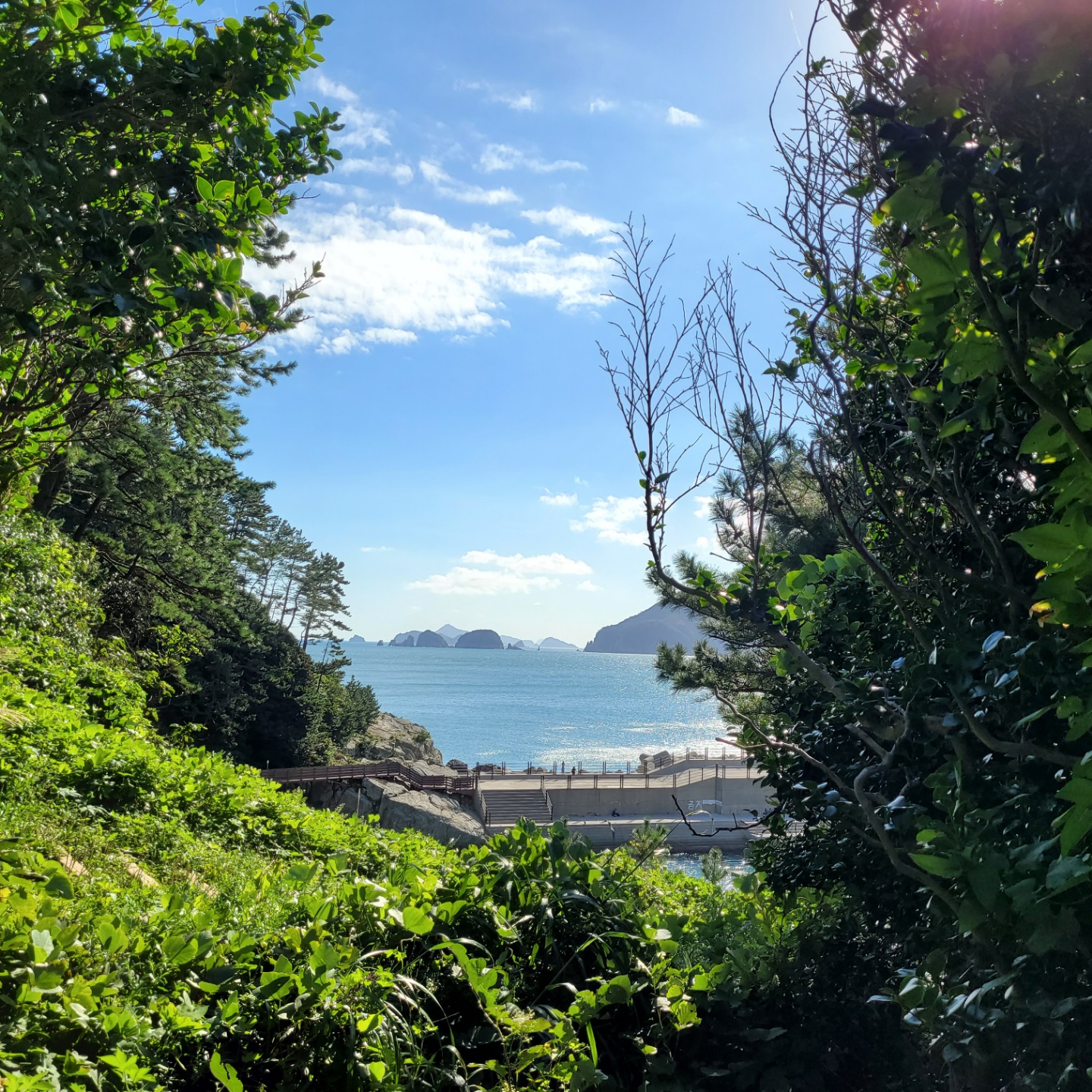 해금강 유람선 매표소에서 해금강 유람선 타는 곳으로 내려가는에서 보이는 멋진 풍경입니다.