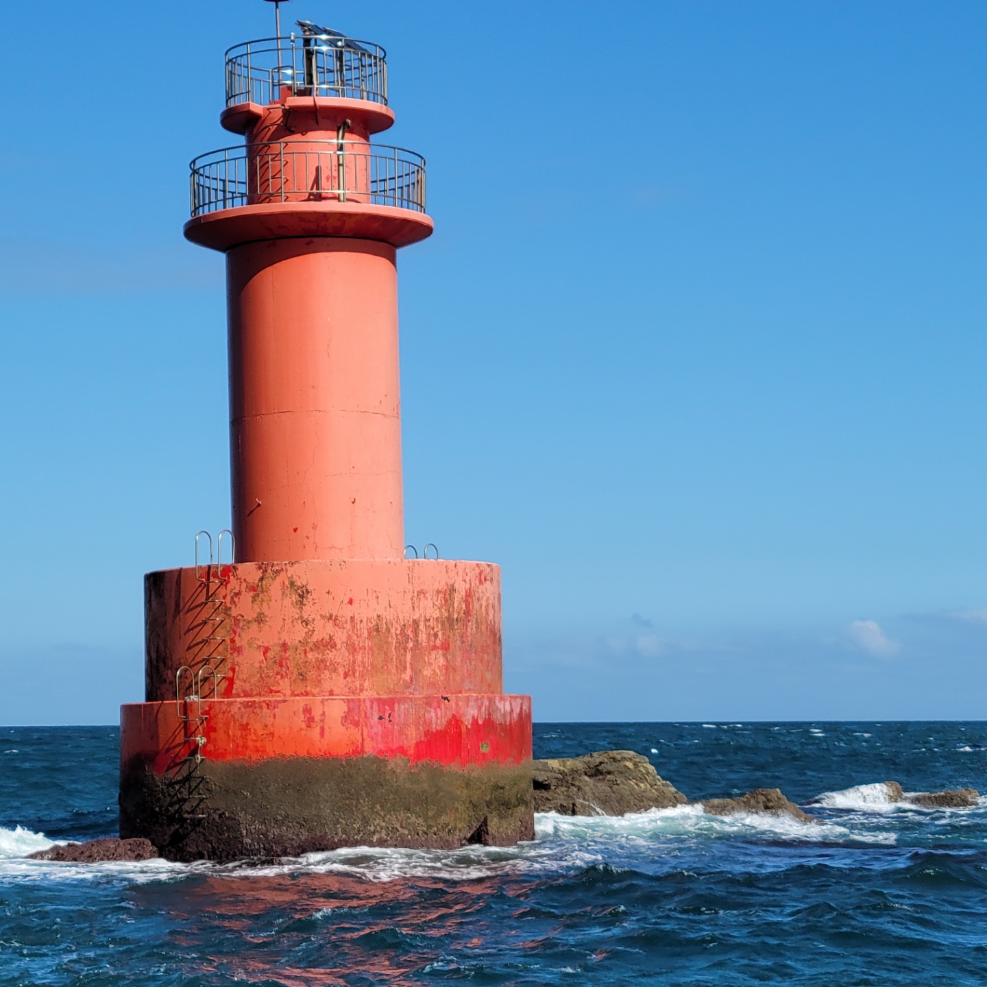 해금강 유람선을 타고 아름다운 섬으로 가는 길목에 있는 등대입니다.