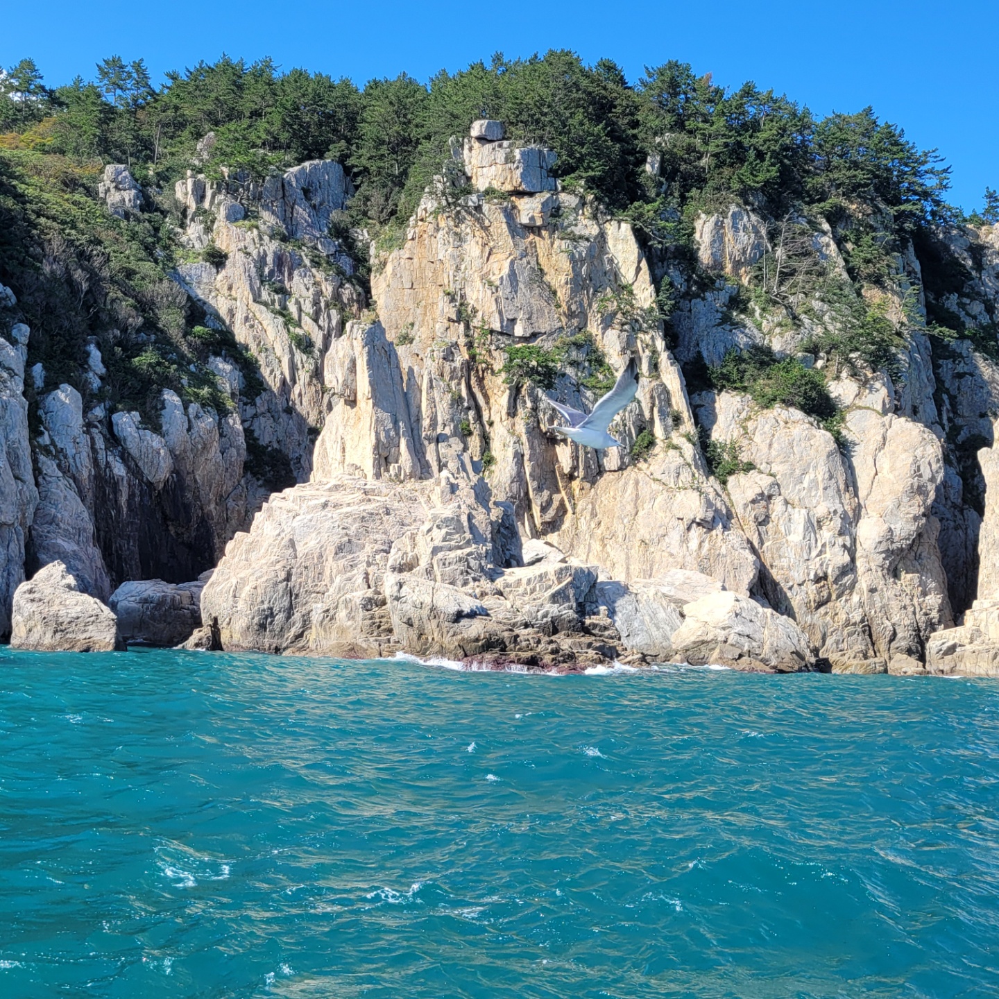 코발트 바다와 바다 절벽, 갈매기가 어려워진 무릉도원입니다.