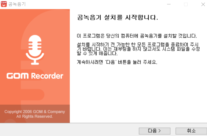 곰 녹음기를 설치하시기 전에 이용 약관을 살펴보시기 바랍니다.