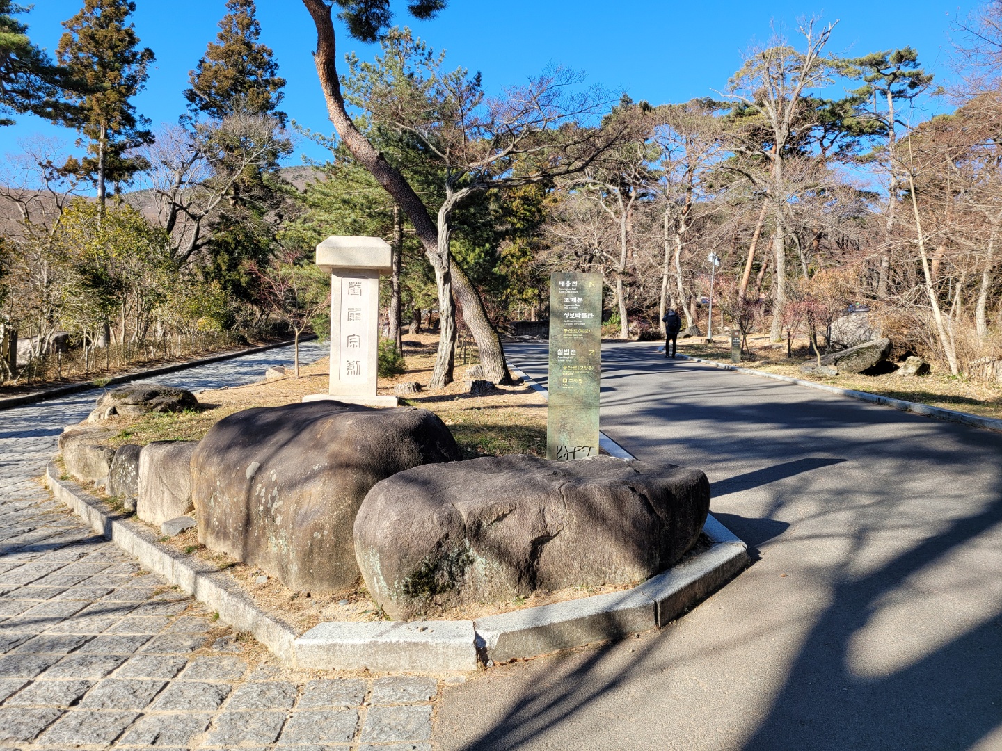 대웅전에서 좌쪽 옆으로 나오면 북문, 고당봉 가는 길 팻말이 있습니다.