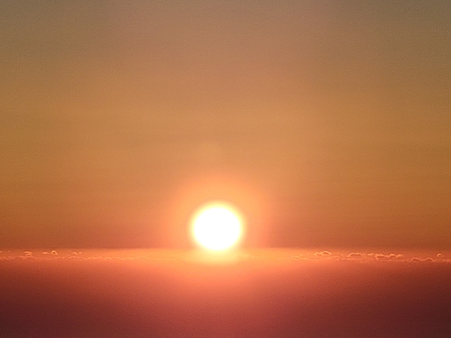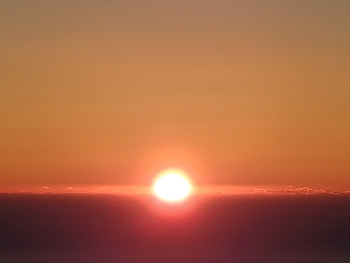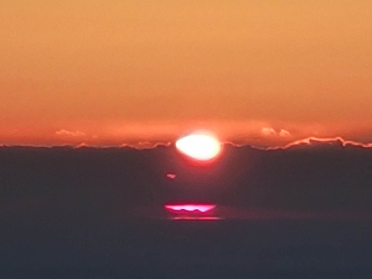구름 사이로 벌건 불덩어리가 여자 입술 립스틱처럼 보이기 시작하더니 순식간에 떠오르기 시작했습니다.