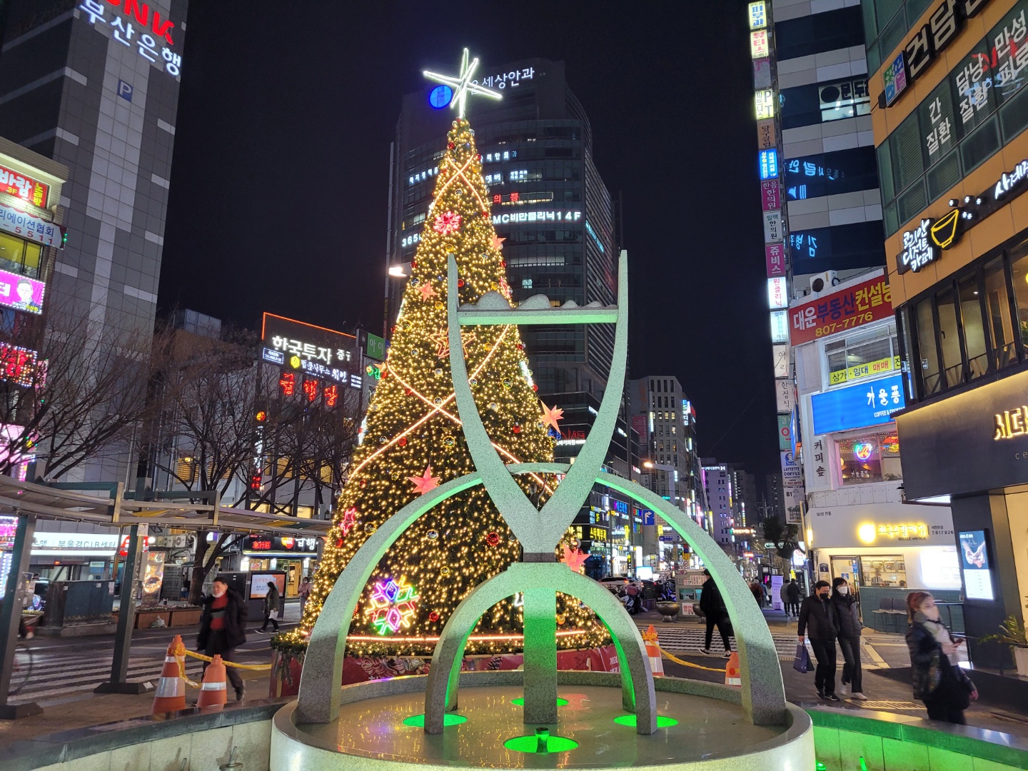 연말이라서 영광도서 앞에 크리스마스 추리가 멋지게 만들어져 있습니다.