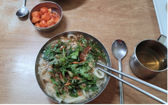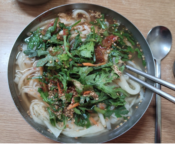 부산 서면 맛집 기장 손칼국수는 쑥갓과 휘저어서 드세요