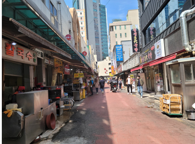 서면시장 이 골목만 지나면 쭉쭉 벋은 대로와 고층건물들이 있습니다.