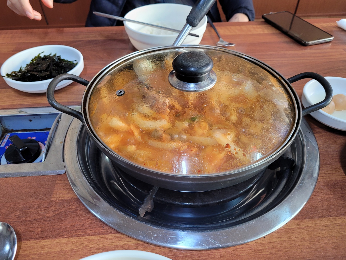 손님이 자꾸 열었다가 닫았다가 하면 김 빠져서 맛이 없어지니 다 끓기를 기다리면 이모가 와서 뚜껑을 열어줍니다.