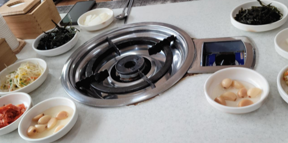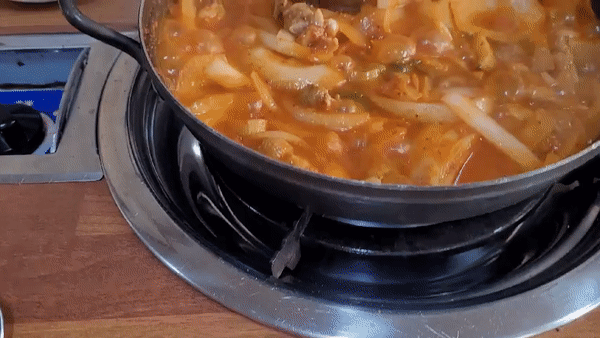 손님이 자꾸 열었다가 닫았다가 하면 김 빠져서 맛이 없어지니 다 끓기를 기다리면 이모가 와서 뚜껑을 열어줍니다.