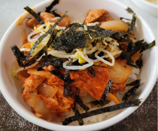 콩나물은 매운 것을 중화시켜주고 김가루는 입맛을 한껏 돋아줍니다.