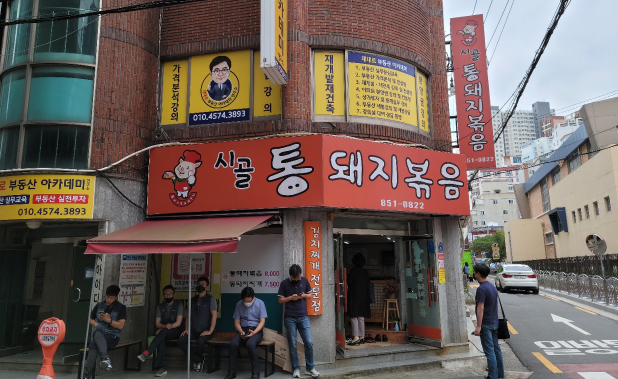 부산 연산동 시골 통돼지볶음 찌게집 정문 앞입니다.