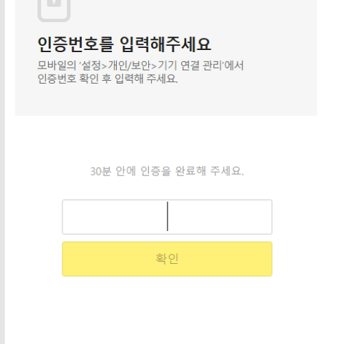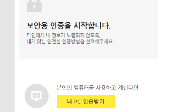 카톡을 PC에 사용하기 위해서는 본인 인증의 보안용 인증을