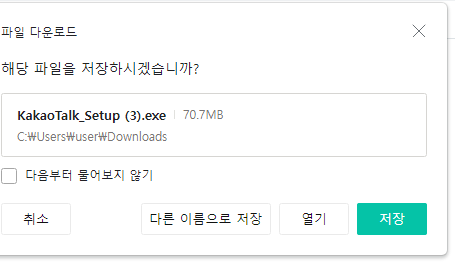 아래와 같이 파일 다운로드를 저장하는 화면이 나옵니다