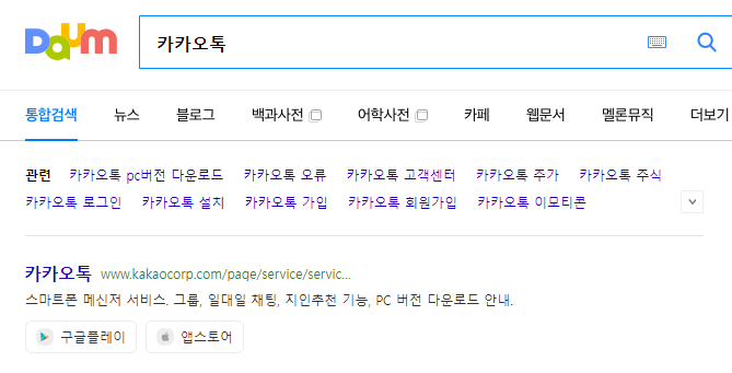 1) 다음, 네이버에서 "카카오톡" 검색합니다