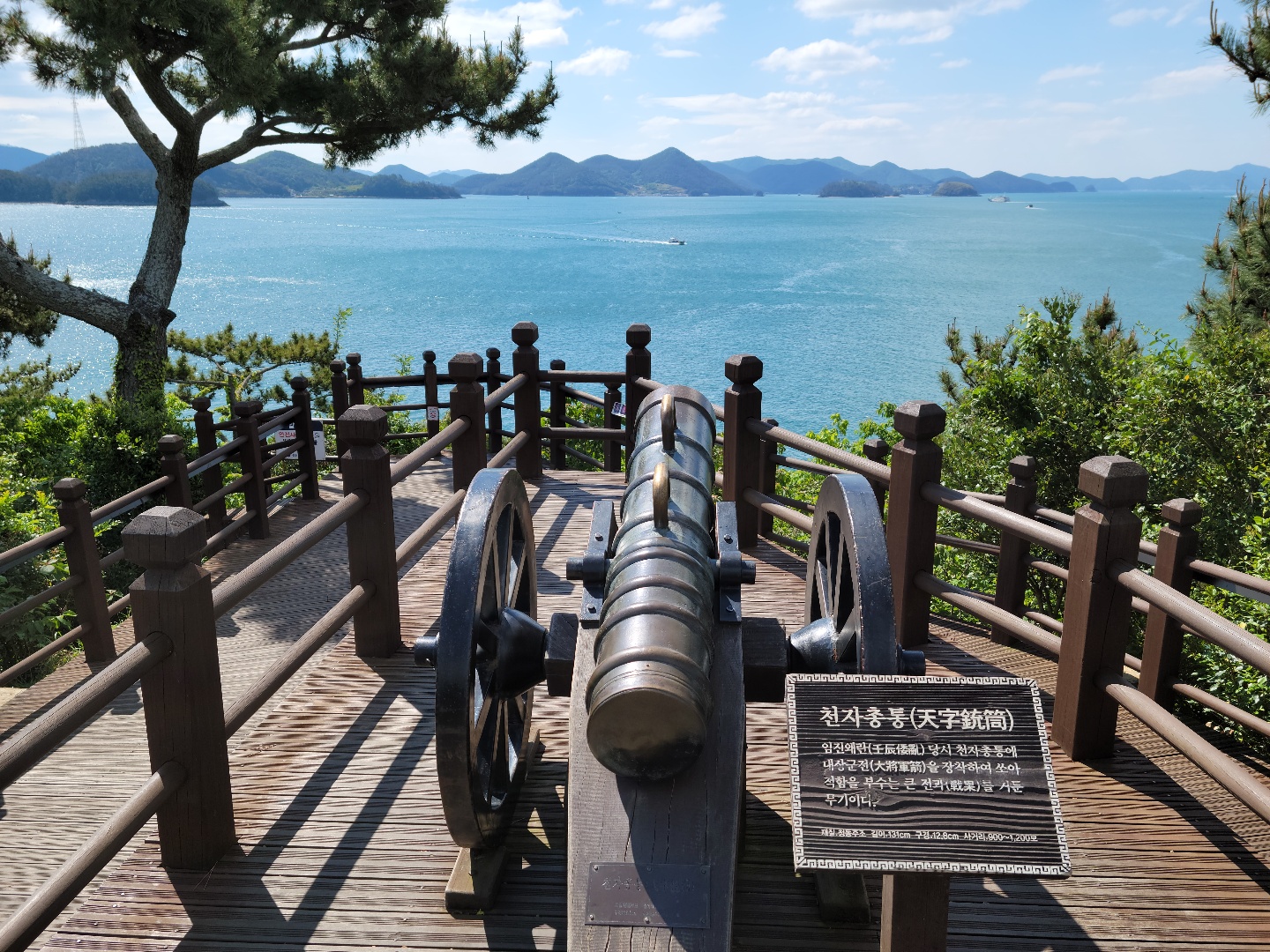 임진왜란 때 이순신 장군 전함의 주력 화포인 천자총통이 바다를 보고 설치되어 있습니다.