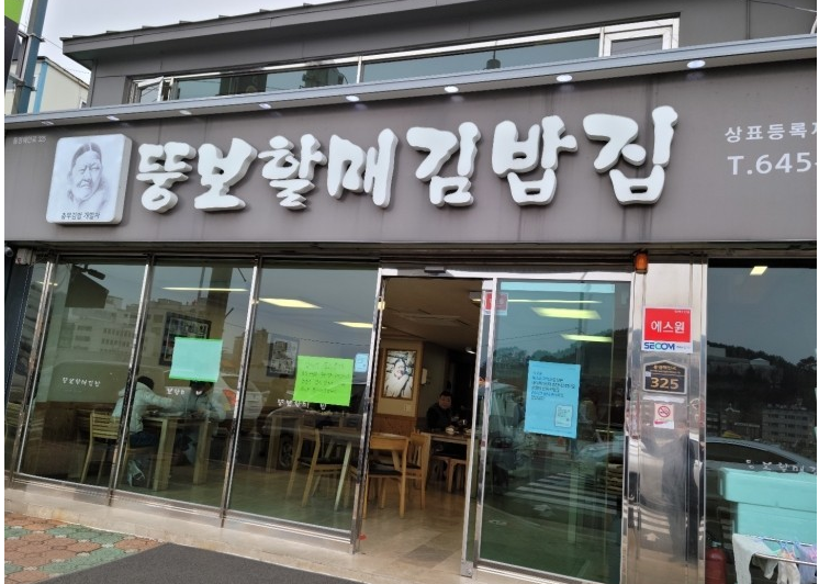 잠깐 뚱보 할머니 김밥을 사려면 잠시 정차가 가능합니다. 현장에서 드시려면 주차장에 차를 주차해야 됩니다.