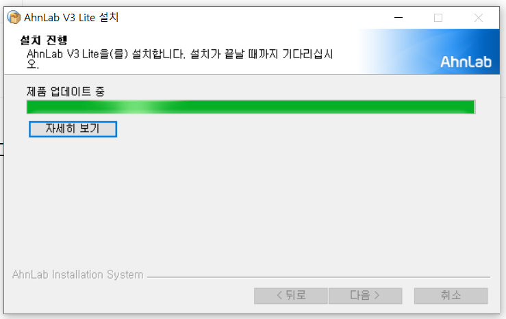 안랩 v3Lite 을 설치합니다. 설치가 끝날 때까지 기다리십시오.