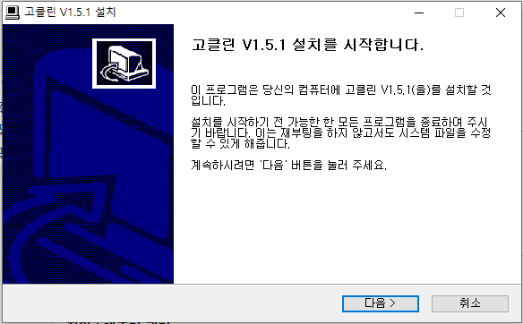 고클린 V1.5.1의 설치가 완료되었습니다.