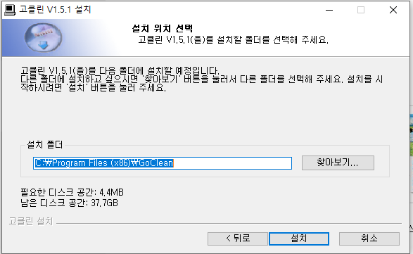 고클린 V1.5.1을 다음 폴더에 설치할 예정입니다.