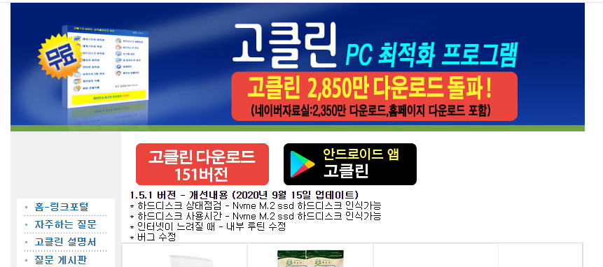 PC에 설치 시에는 고클린 다운로드 151을 클릭하여 무료로 다운로드합니다.