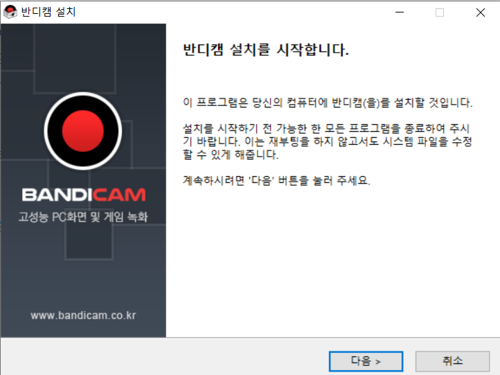 이 프로그램은 당신의 컴퓨터에 반디 캠을 설치할 것입니다.