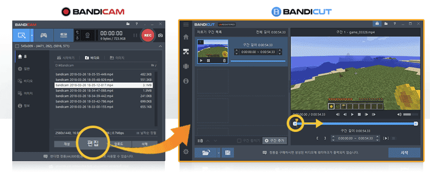 반디 캠을 사용하면 동영상 편집이 자유롭습니다.