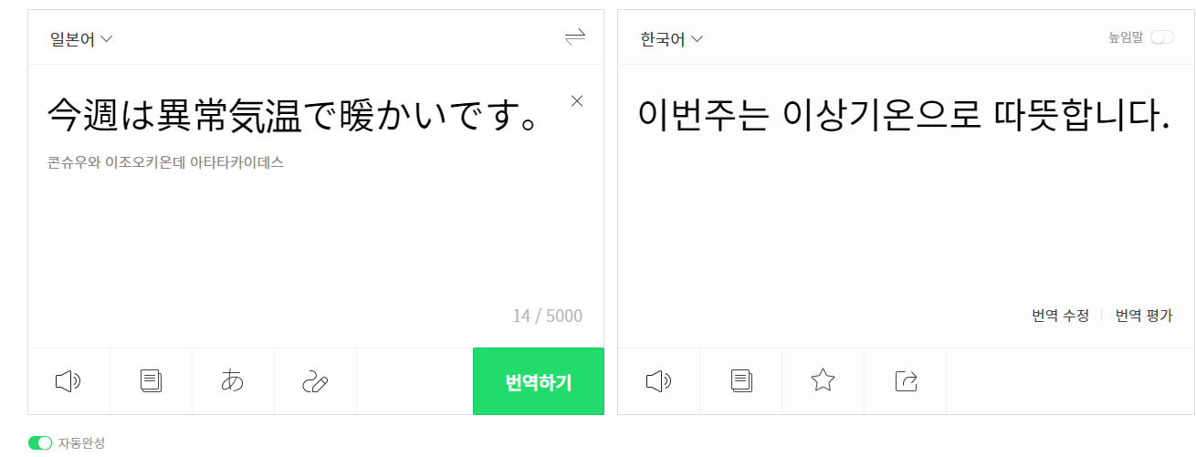 이번에는 파파고에서 일본어를 한국어로 번역해보겠습니다.