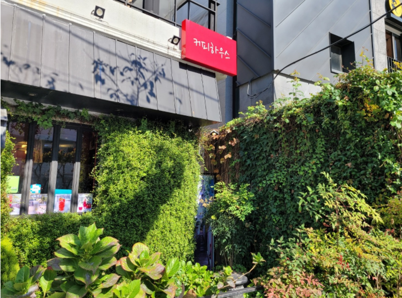 외벽이 초록 담쟁이덩쿨이 보입니다.