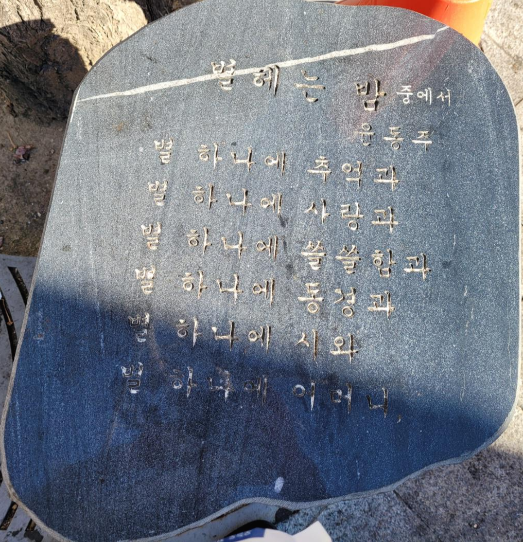 부산 서면 맛집 태화 육개장에 나와서 전화받고 있는데 인도에 시비가 하나 있네요