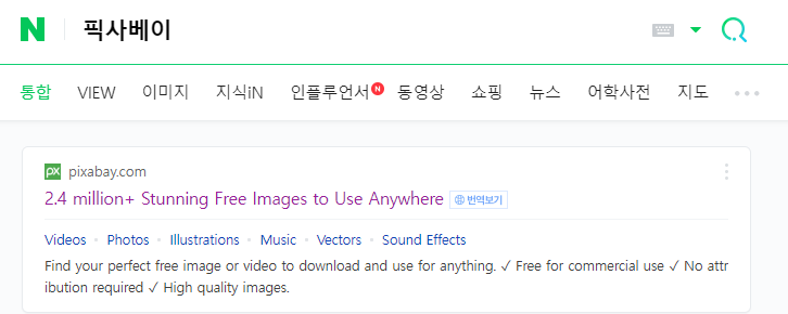 네이버, 다음 등 검색으로 픽사 베이라고 검색을 하면 나오는 홈페이지로 들어갑니다.