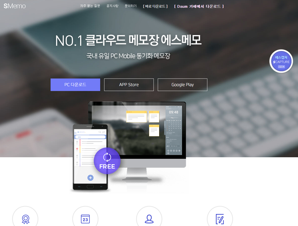 에스메모는 PC 다운로드되고 스마트폰에도 각 각 다운로드 가능합니다.